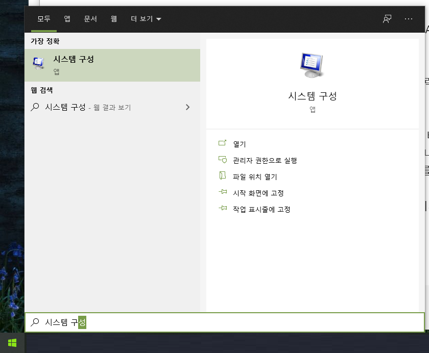 ❶ 시작 메뉴를 클릭하고 시스템 구성을 입력한 다음 프로그램을 엽니다.