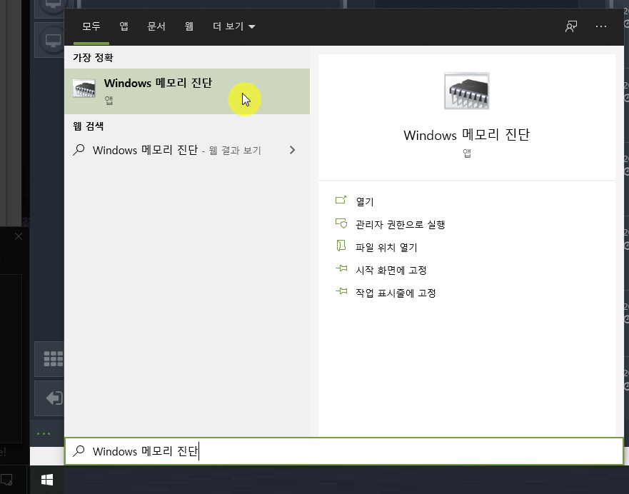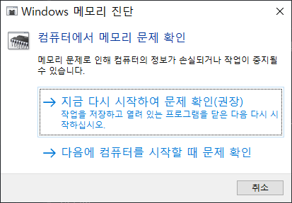 추가적인 프로그램을 설치하지 않더라도 윈도우가 내장한 자체 기능을 실행하여 메모리가 정상적인 상태인지 확인할 수 있습니다.