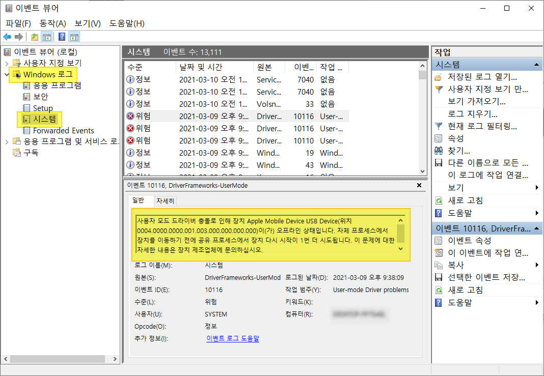 이벤트 뷰어를 사용하는 방법은 다음과 같습니다.