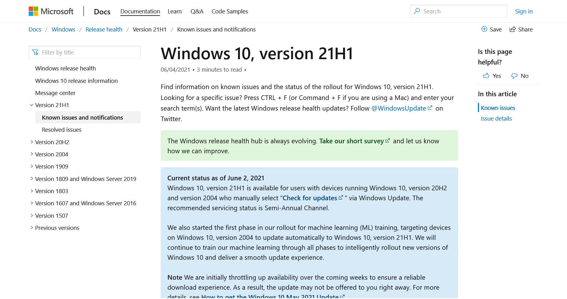 덧붙여서 '버전 21H1'의 지원 기간은 Windows 10 Home/Pro의 경우 내년 5월 10일까지 입니다. Windows 10 Enterprise/Education은 1년이 긴 2023년 5월 9일까지 지원됩니다.