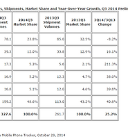 삼성만 출하량 감소, 하락 - 2014년 7~9월, 스마트폰 세계 시장 점유율 (3) | 2014.10.30 |
