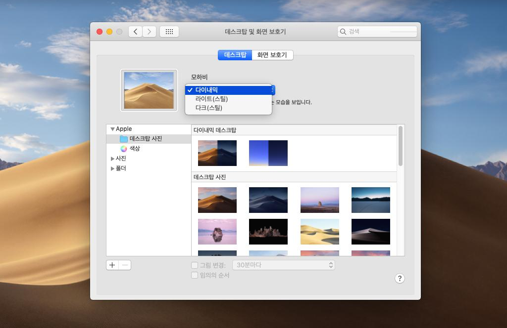 맥 OS 모하비 다이내믹 데스크탑용 배경화면, 여기서 다운로드 할 수 있다 본문