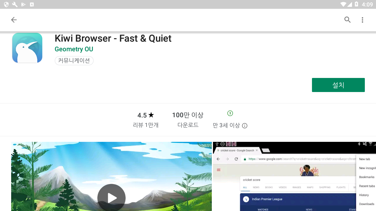 먼저 구글 플레이 스토어에서 키위 브라우저를 다운로드하고 설치해 주세요.